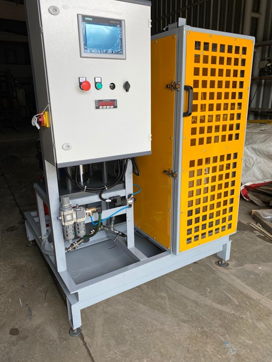 This system uses hydraulic power for precise screwing and unscrewing of LPG cylinder valves, ensuring proper torque application and controlled removal. It improves efficiency, consistency, and safety.
